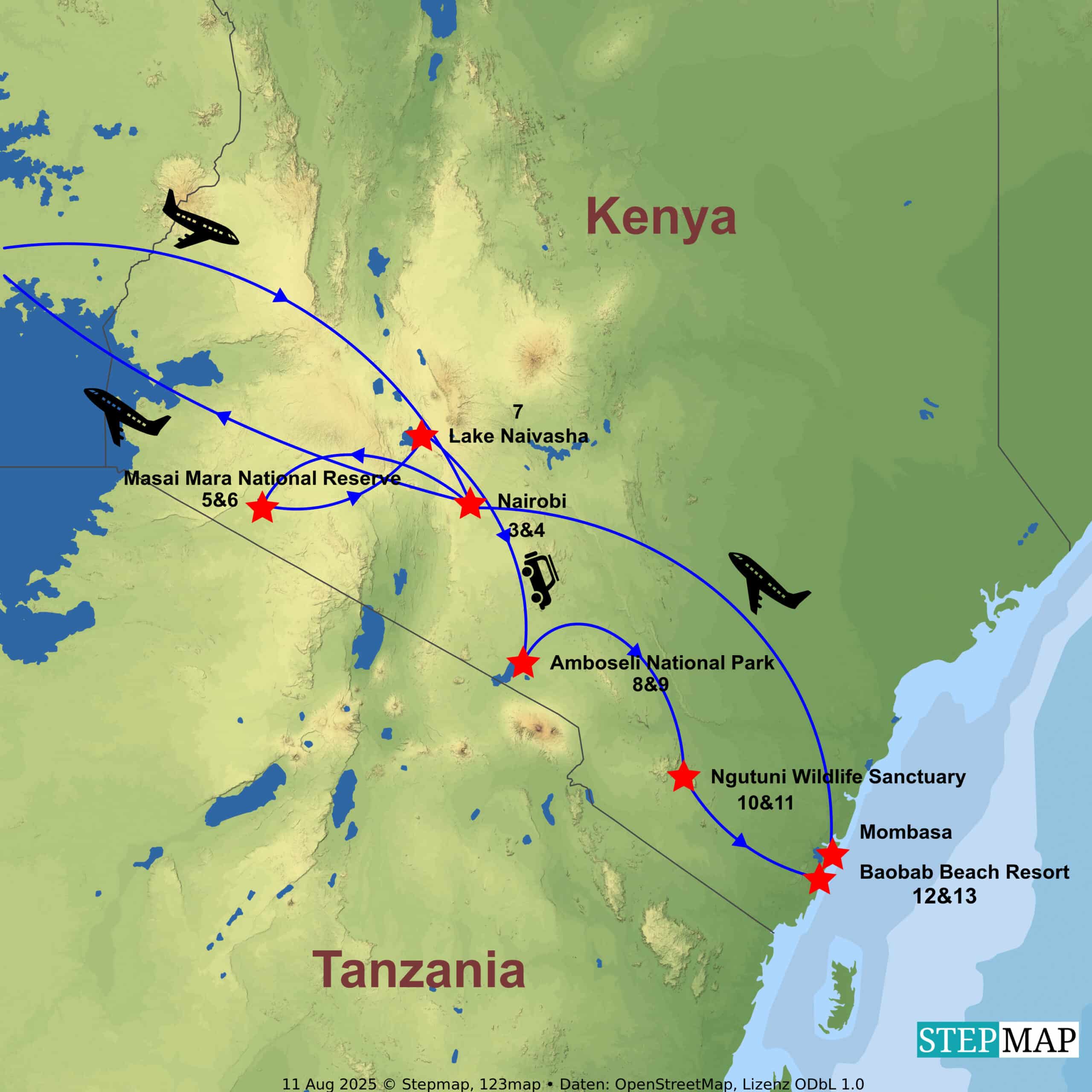 Your adventure begins with an international flight to Nairobi.